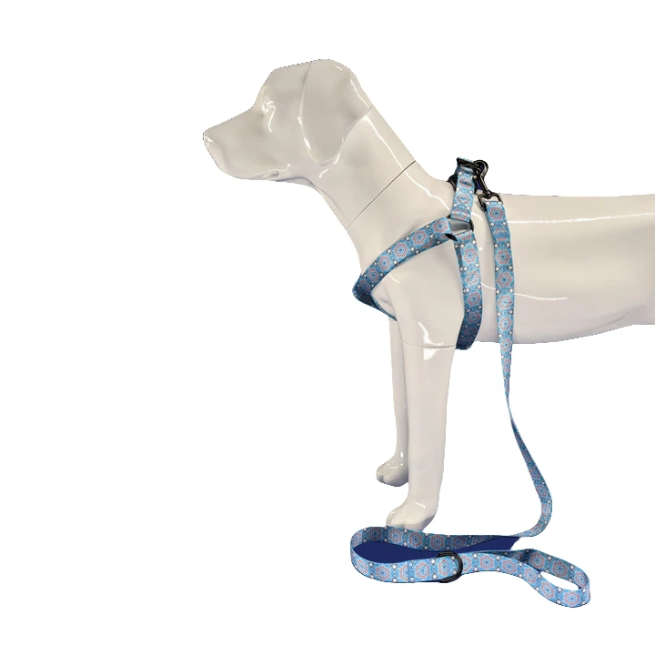 A nyomott nylon lépcsős kutyahám készlet egyszerű felszerelés, amely két heveder hurokból áll, amelyek szorosan illeszkednek az állat mellkasához, felül kioldó csattal. Ez a kutyahám segíthet a kutyát a futásban vagy kocogásban tartani. Könnyű fel- és levenni, valamint kellően kényelmes ahhoz, hogy kézben tartva is kényelmes legyen, és a nagyobb, erősebb kutyák számára a legjobb. Emellett különböző mintákat is tud nyomtatni a hevederekre, nem csak funkcionális, hanem a szemnek is tetszetős érdekében.